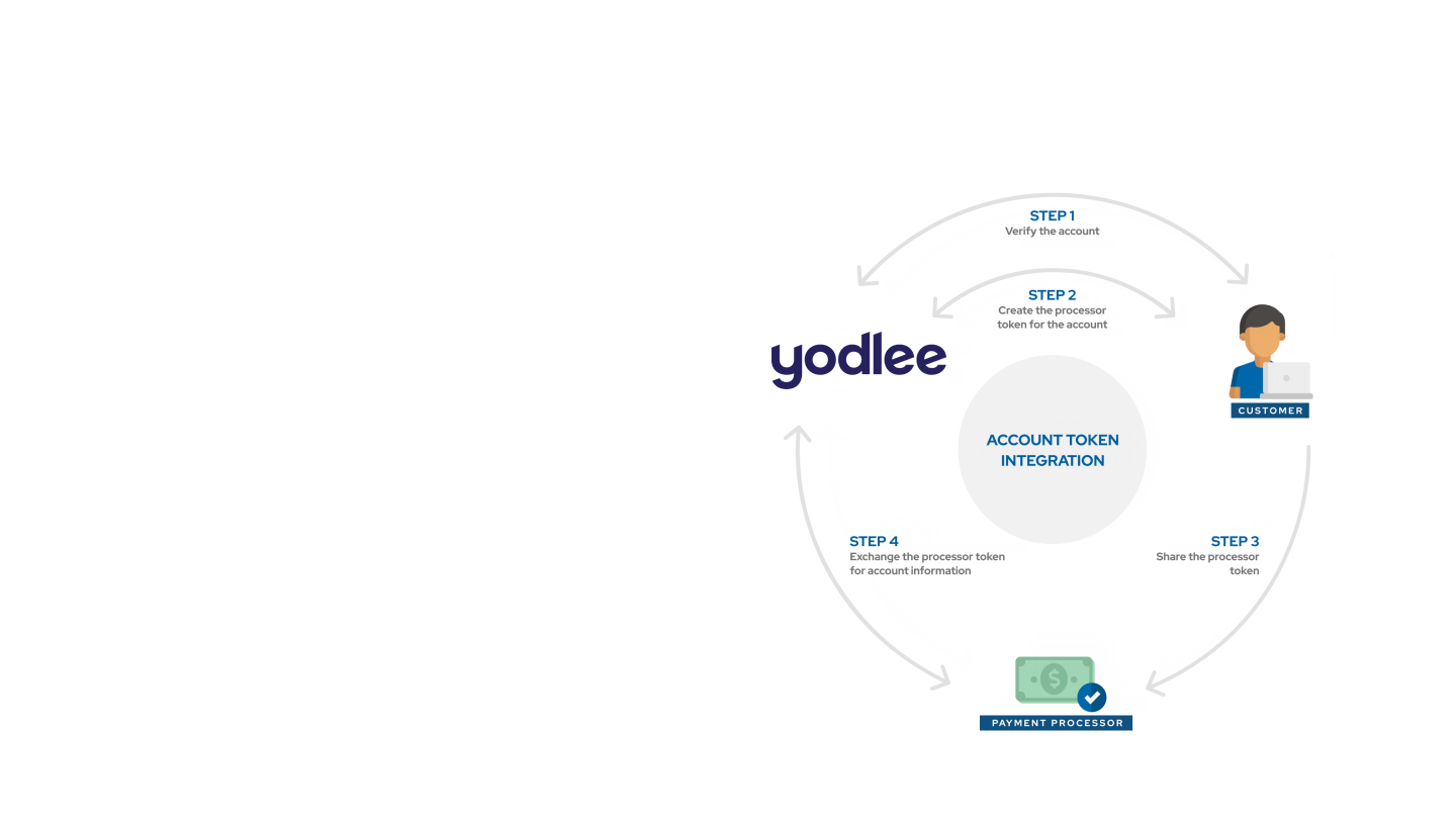 Use Yodlee account verification to increase onboarding speed while reducing the risk of fraud for you and your consumers. You can then securely share bank account data with any of our partners to initiate ACH transfers. Use Account Token to go to market faster with an Yodlee Payment Processor partner.