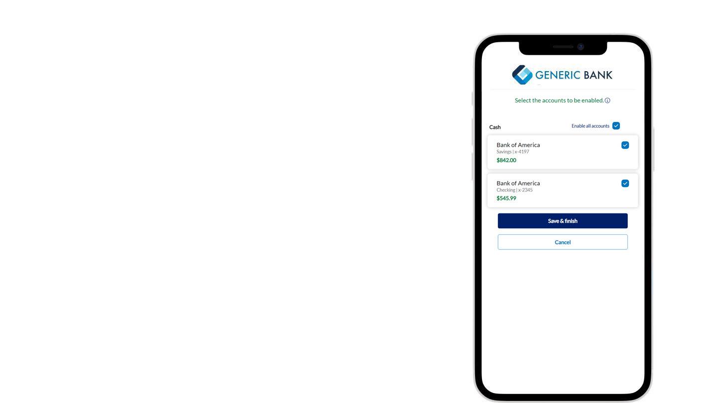 Verify accounts against the largest supported collection of financial institutions in the industry.